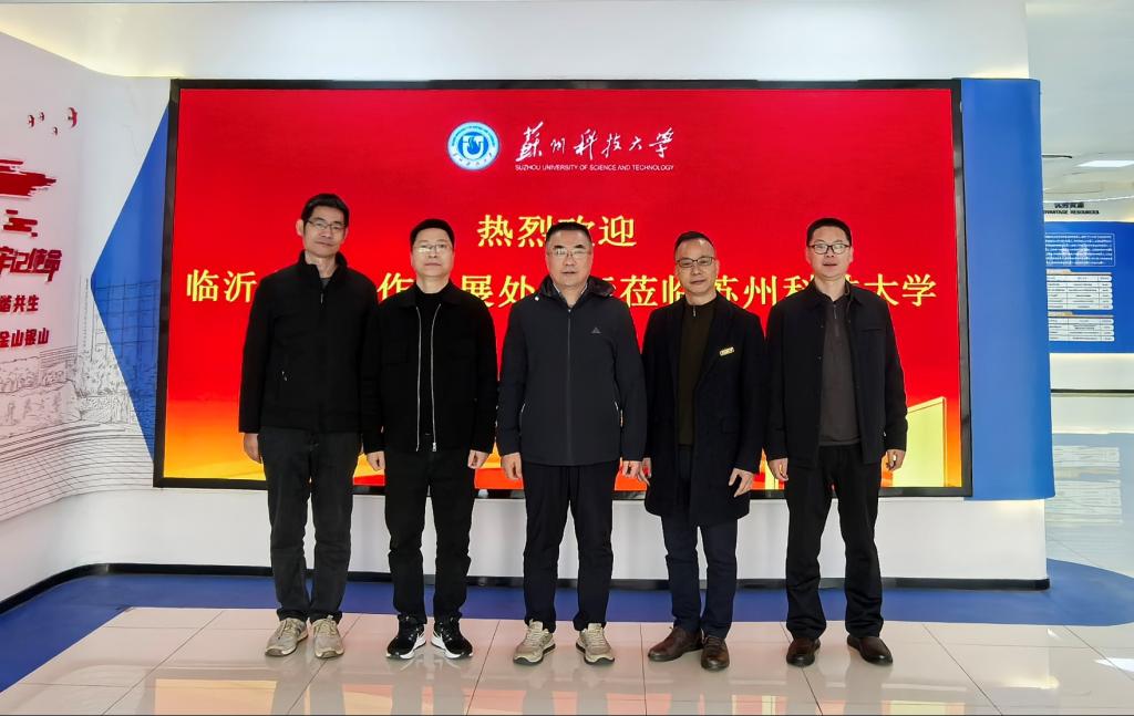 黄力华介绍了临沂大学在校地合作、服务区域经济社会发展方面的探索与实践。他表示,两校之间有良好的合作基础、广阔的合作空间,希望与苏州科技大学加强合作,共谋发展机遇。李华一代表苏科大对黄力华一行的到来表示热烈欢迎。他介绍了学校在“双高协同”、组建企业服务团等推动科研工作率先融入地方经济社会发展需求的工作举措及成效。潘杨介绍了环境科学与工程学院产学研合作项目的总体情况。他表示,学院紧密对接国家和区域重大战略需求,围绕生态环境治理和绿色低碳发展等重点领域,以党建引领,打造“环保小院”服务品牌,持续深化校企协同创新,形成了具有鲜明特色的产学研合作体系。