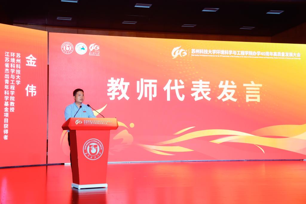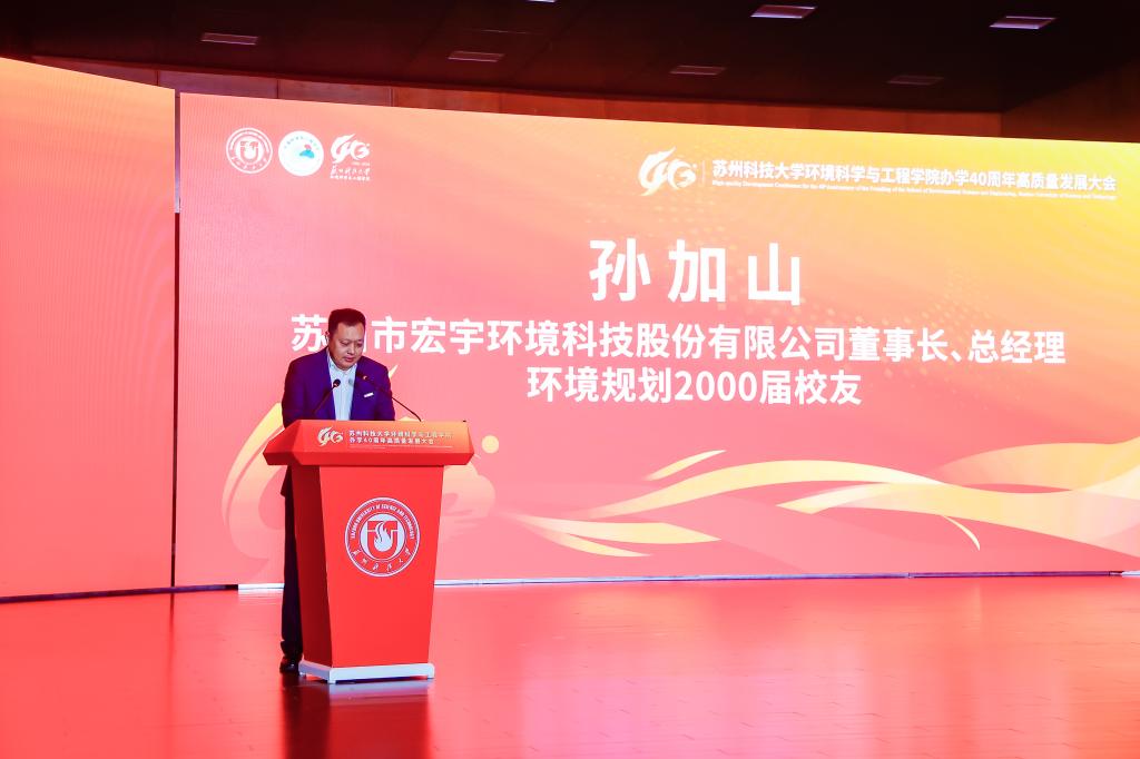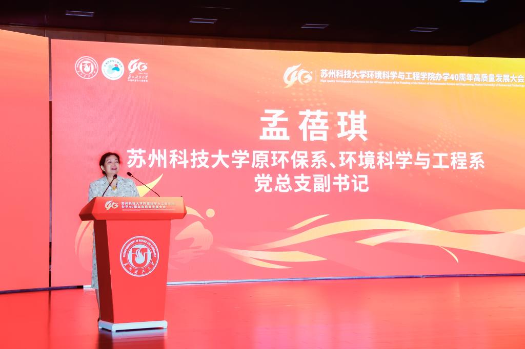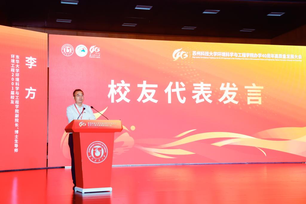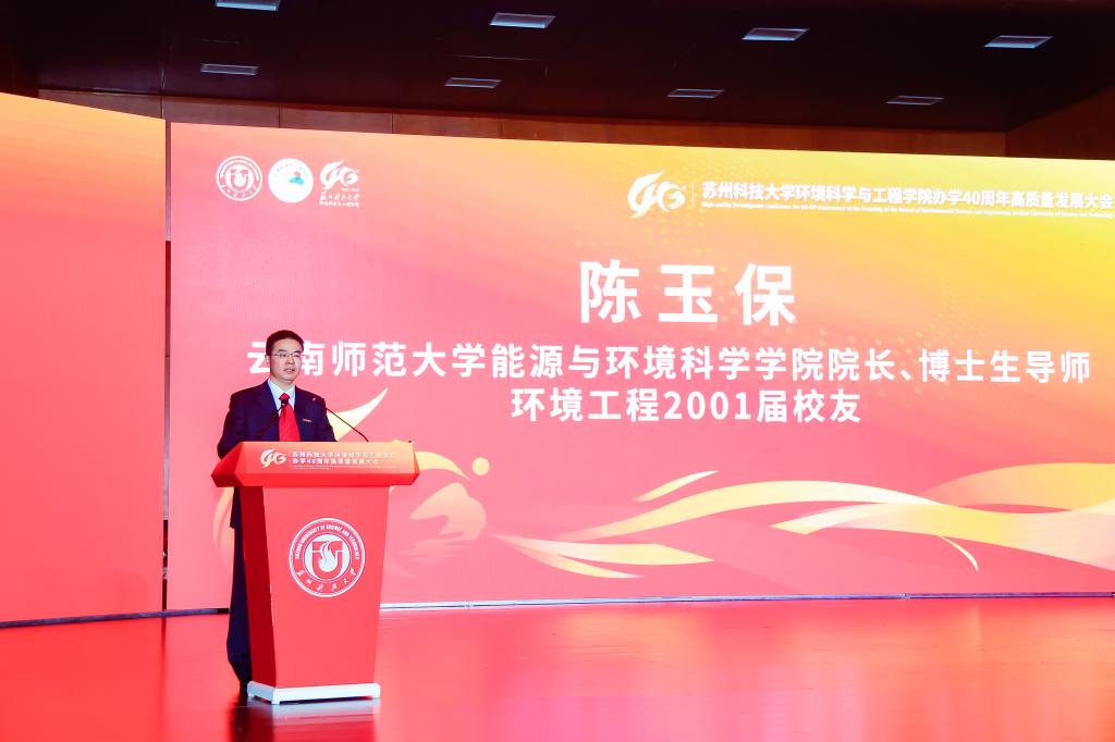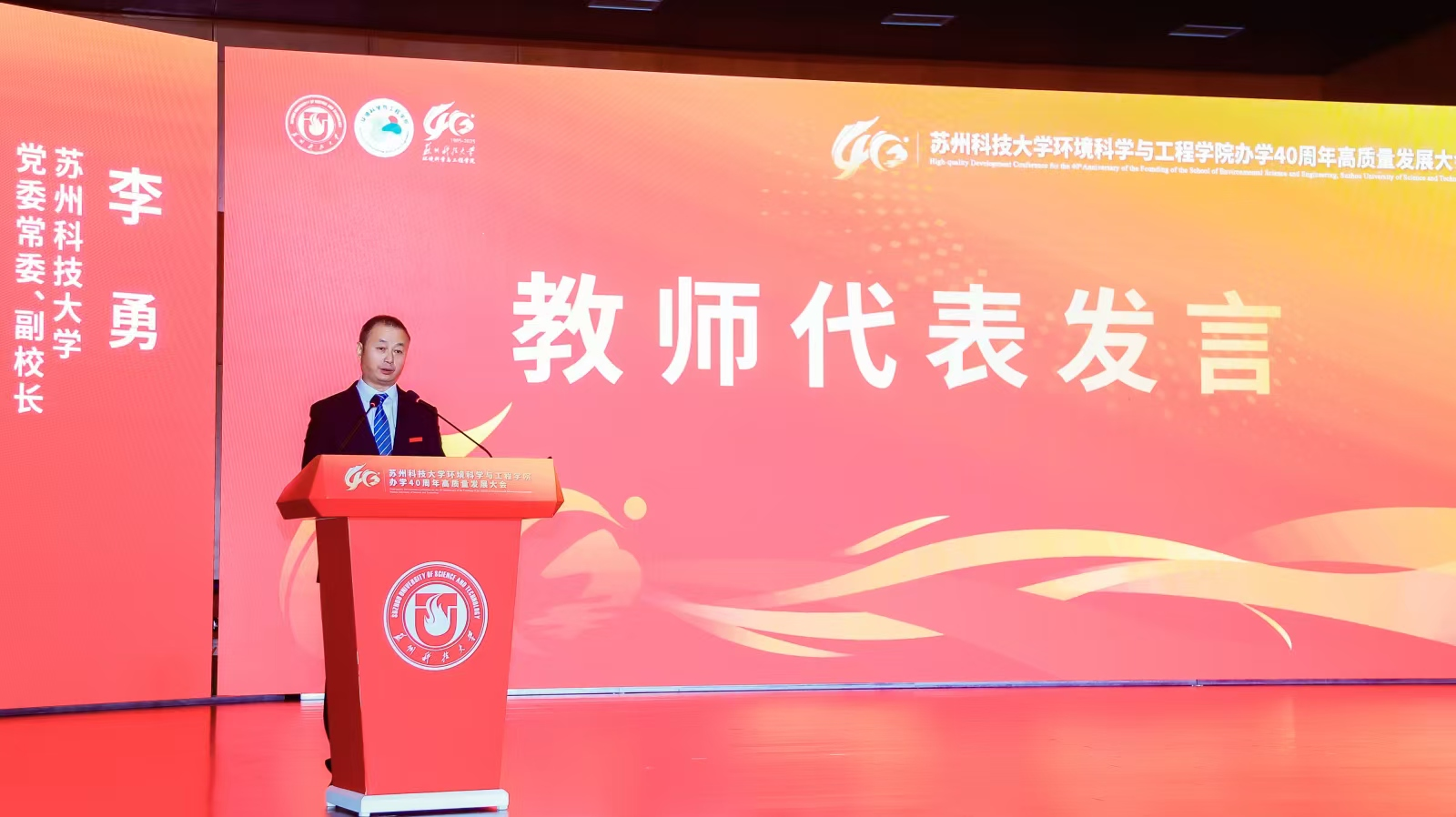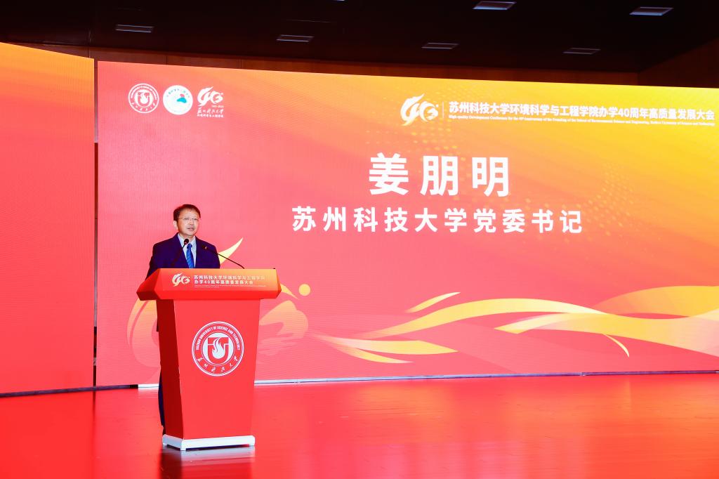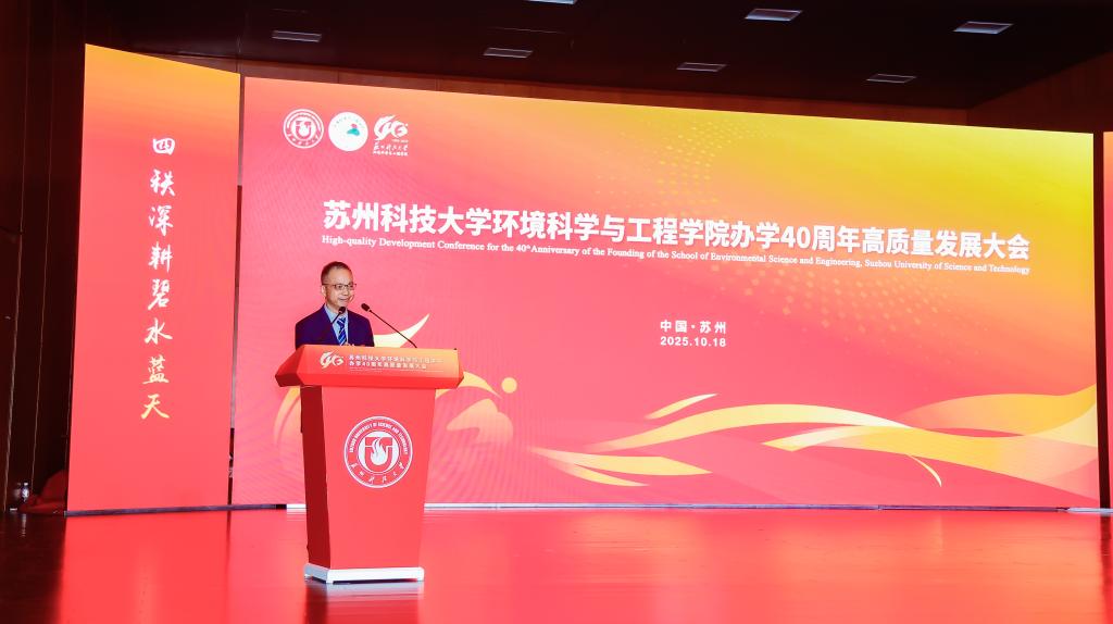 姜朋明代表学校向环境科学与工程学院办学40周年表示热烈祝贺。他指出,学院从苏州城建环保学院环境保护系起步,至今已培养13000余名环保人才,新时代更实现学科跨越式发展——环境科学与工程学科获批一级学科博士点、入选省优势学科,“环境生态学”进入ESI全球前5‰,建成学校首个国家级科研平台,并为120余个“一带一路”国家培养2100余名环保人才,彰显“创业敬业团结进取”的苏科大精神。他表示,学校将在学科、人才、平台建设上为学院提供保障,希望学院以四十年积淀为基,在服务国家战略与区域发展中展现更大担当、实现更大作为。