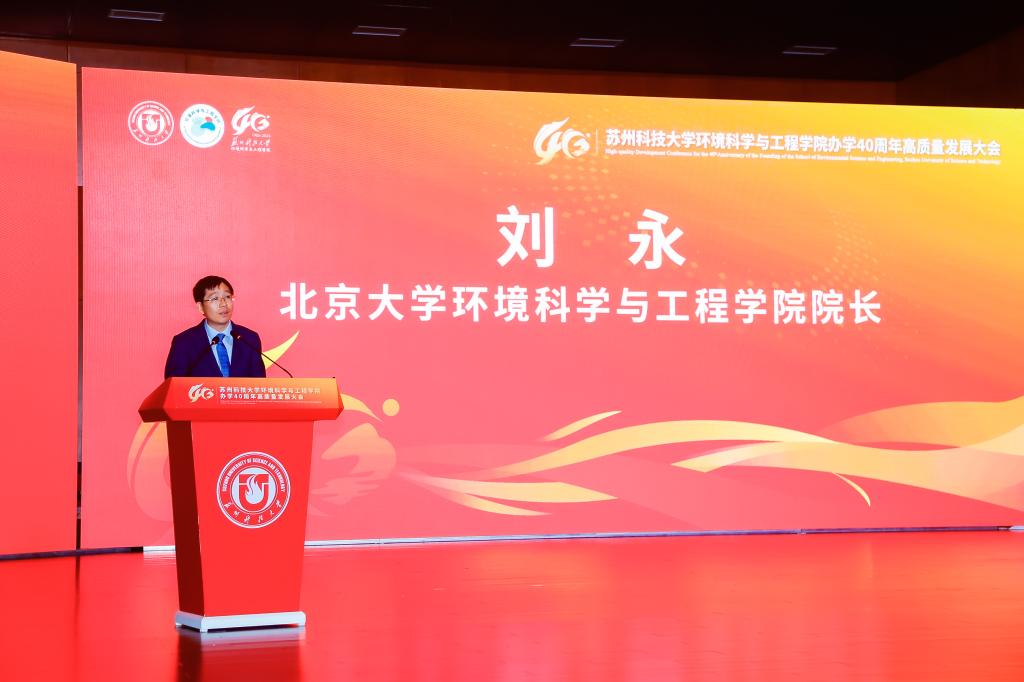 大会收到哈尔滨工业大学、同济大学等35所高校环境类学院的贺信。北京大学环境科学与工程学院院长刘永作为兄弟高校代表致辞。他表示,环境科学与工程学院深耕教育科研,为环境质量改善作出重要贡献,期待两校深化合作,共解全球环境难题。