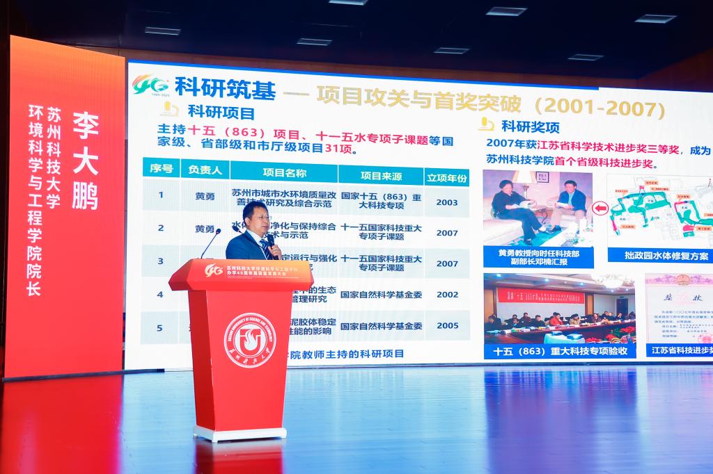 环境科学与工程学院院长李大鹏作学院40周年发展历程报告,回顾了学院的发展历程和办学成果,介绍了学院在师资队伍、人才培养、科研成果、社会服务与国际交流等方面取得成绩。他表示,在强国新征程上,学院将继续秉承优良传统,以“全方位服务美丽中国建设”为己任,产出更多服务国家战略的科研成果,让“苏科大环境人”的使命担当在新时代焕发更强生命力。