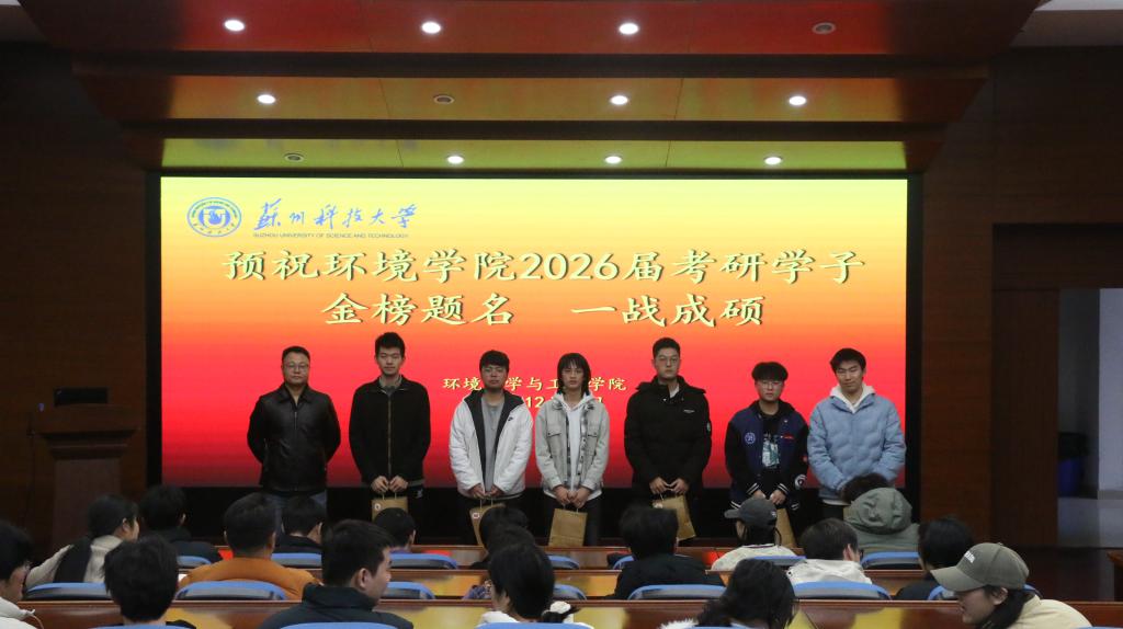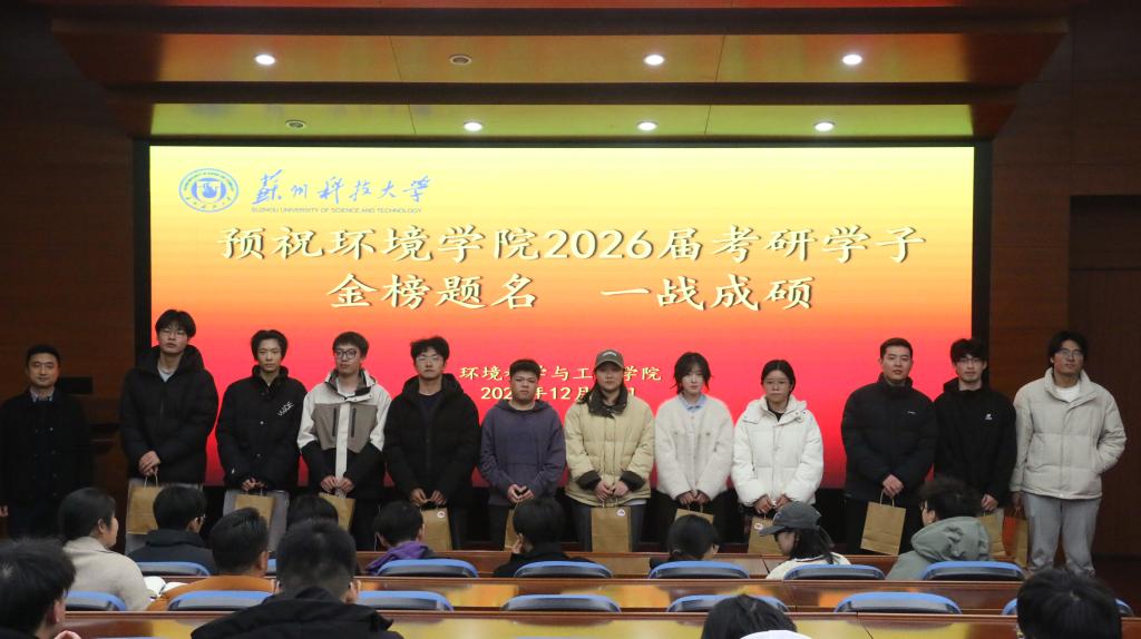 为坚定考研学子信念,营造温馨迎考的良好氛围,2025年12月12日,环境科学与工程学院在环境楼二楼报告厅举行2026届毕业生考研送温暖活动。学院院长李大鹏、党委副书记顾银君、副院长钱飞跃、全体毕业班辅导员出席会议,2026届考研学子代表参会。