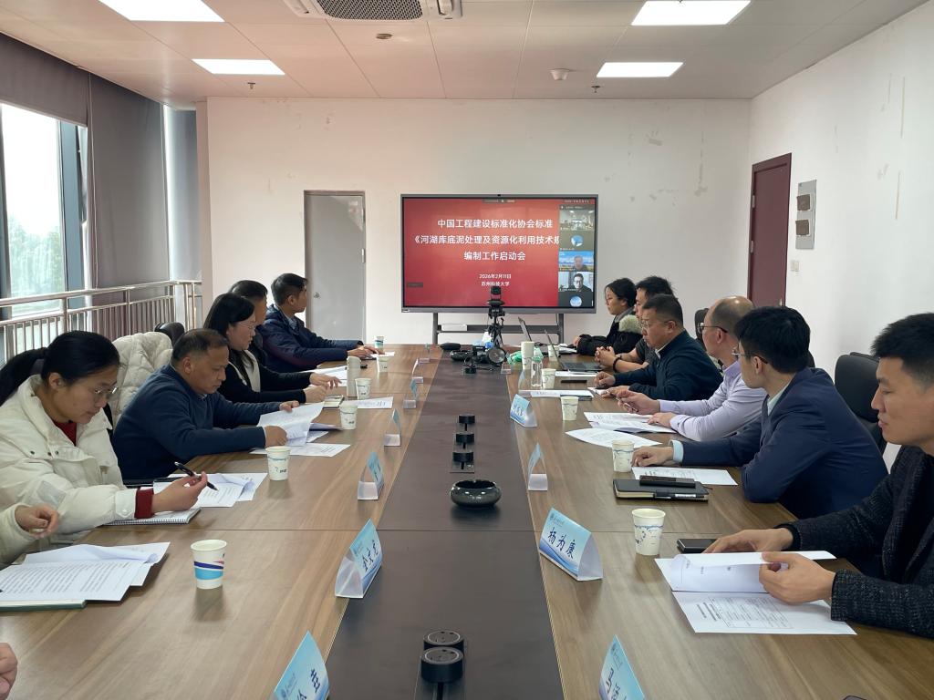 2026年2月11日,由中国工程建设标准化协会批准、苏州科技大学主编的协会标准《河湖库底泥处理及资源化利用技术规程》编制组成立暨第一次工作会议在我校石湖校区顺利召开。本次会议由中国工程建设标准化协会海绵城市工作委员会指导,苏州科技大学主办,来自全国多所高校、科研院所与企业等12家参编单位的代表及特邀专家共20余人参会。