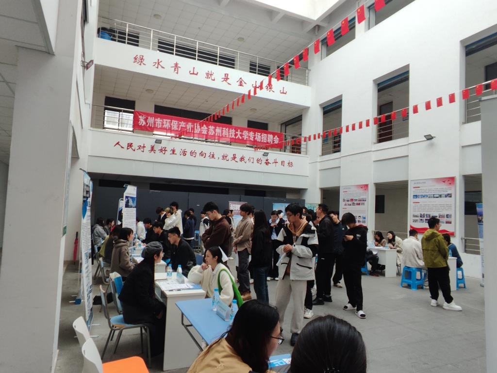 苏州市环保产业协会现有会员单位400余家,范围覆盖苏州四市六区。本次招聘会共邀请了宏宇环境、中宜金大、淡林环境、康达检测等30余家优质企业参会。为学院2026届毕业生提供与专业相关度较高的200余个岗位。