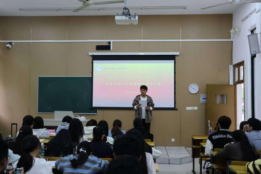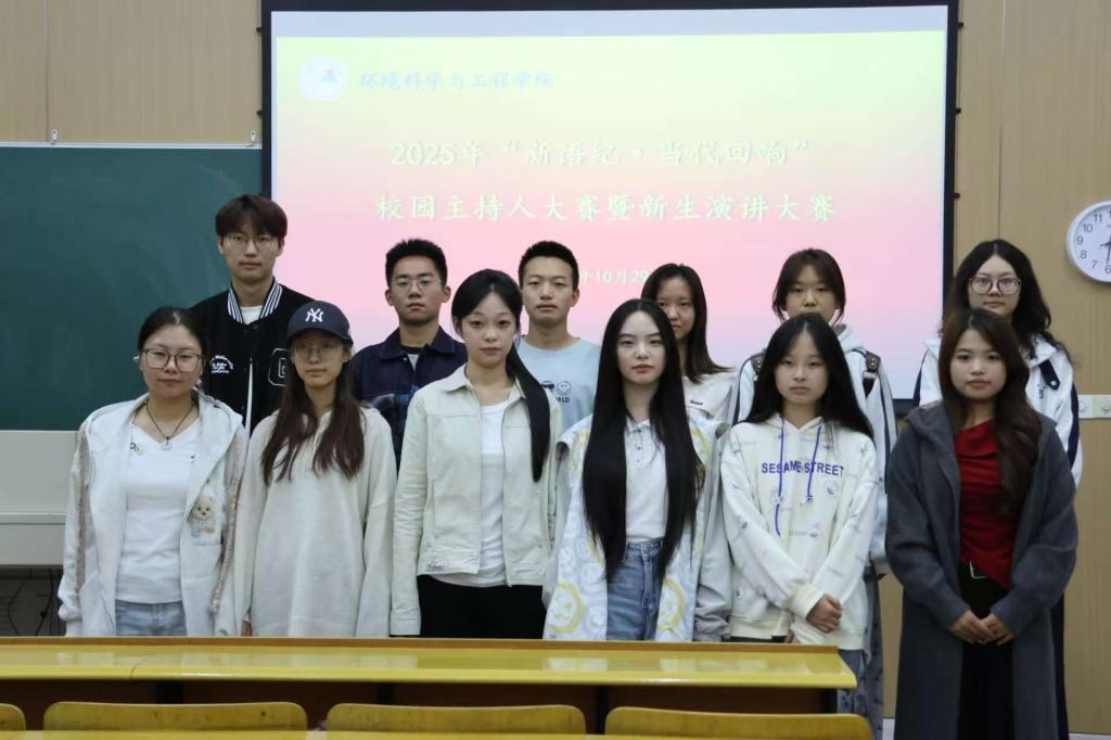 10月29日,环境科学与工程学院“新语纪·当代回响”校园主持人大赛暨新生演讲比赛在C6-109教室顺利举办。本次活动由学院学生会和行风自然协会共同举办。