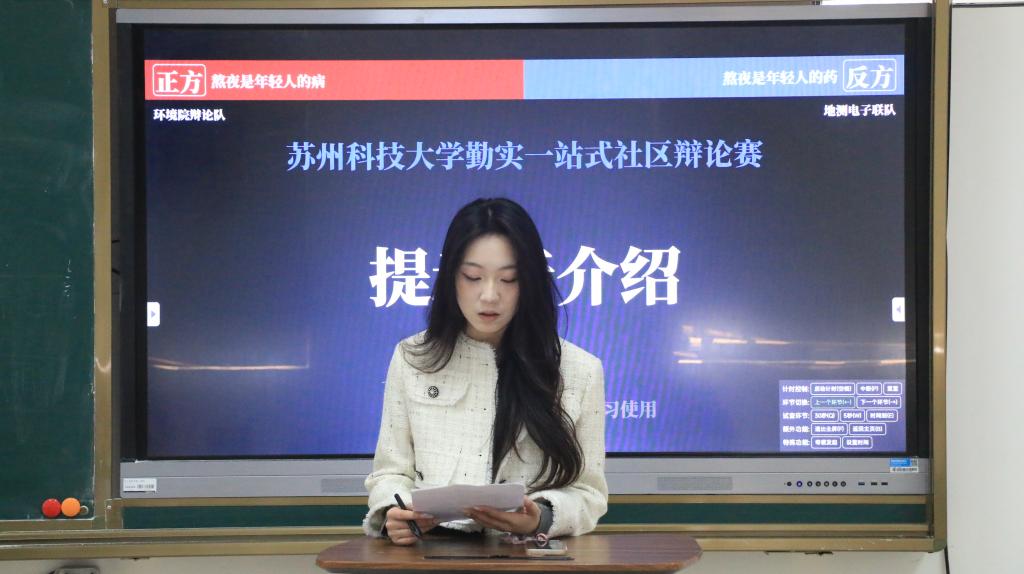 为进一步丰富校园文化生活,全面提升学生的逻辑思辨、语言表达与团队协作等综合素养,营造积极向上、乐于探索的校园学习与交流氛围,11月22日上午,“勤实”一站式学生社区在教4-310教室成功举办“百辩青春,筑梦未来”主题辩论赛。本次活动由环境学院牵头举办,社区相关学院的同学组成参赛队伍同台竞技。赛事特邀苏州科技大学校辩论队队长满庭轩、教练魏一舟,元爻辩论队队长刘建哲担任评委,为比赛提供专业指导与点评。